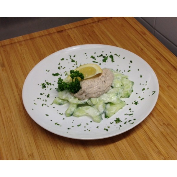 Rillettes de thon et crème de concombre à la menthe