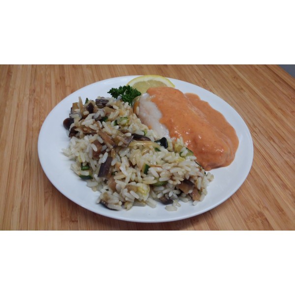 Dos de colin sauce homardine, tortis et légumes d'automnes