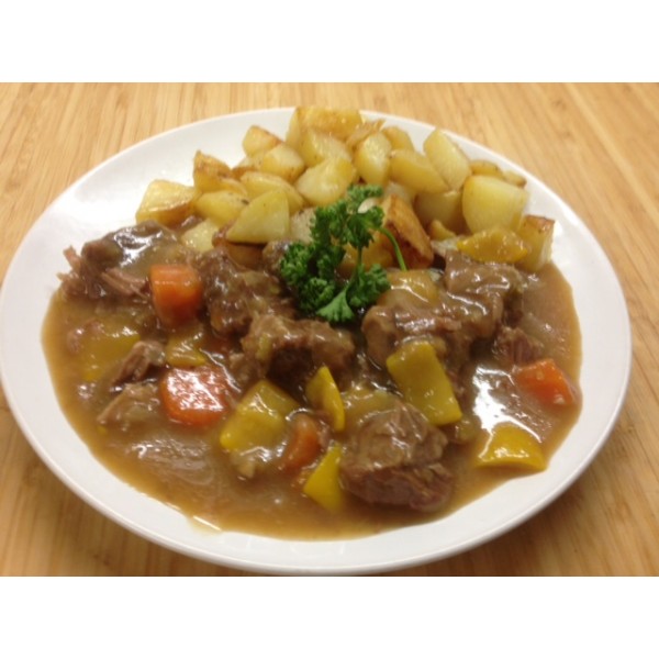 Joue de porc au cidre, riz sauvage et légumes  mijotés
