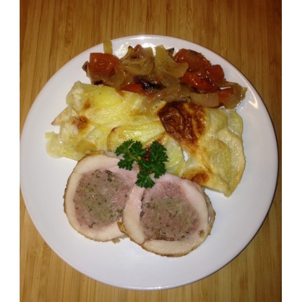 Gigolette de dinde sauce moutarde pommes sautées et flan de légumes